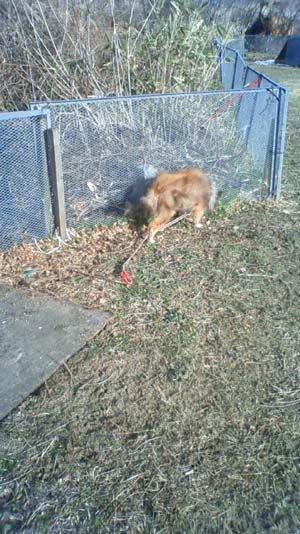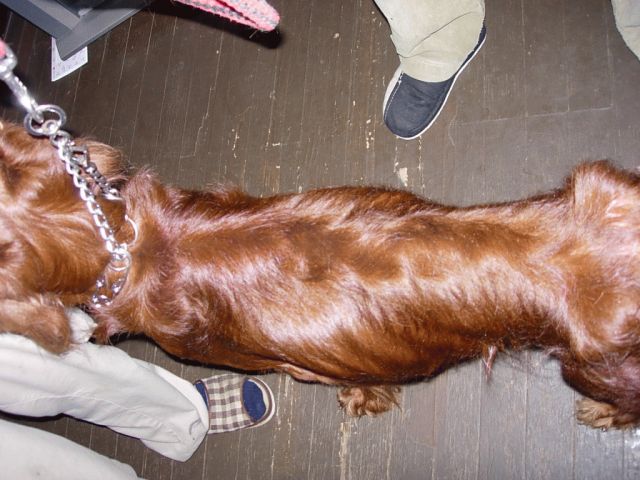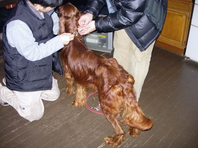 �アイリッシュセッター2頭(1頭はメス(1歳ぐらいで健康状態があまりよくないようです))