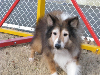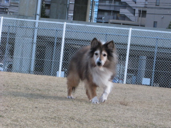 そんなところに、近所を歩くシェルティーちゃん発見@@;